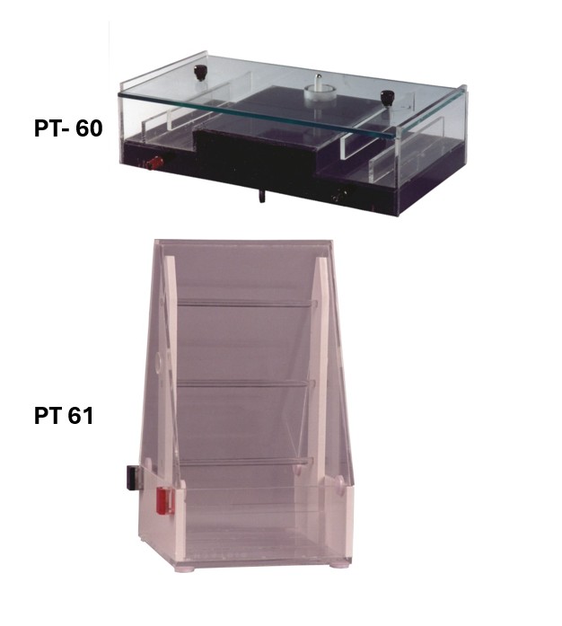 Paper Strip Electrophoresis Apparatus can accommodate 6 or 3 paper strips. Buffer can be saturated very fast in this mechanism. A recessed safety interlock switch breaks the current of both electrodes while the lid of the mechanism is lifted. Diffusion of the buffer which is in contact with ends of paper strip. Polarity of the electrode is indicated by two pilot lamps provided on the front panel. The complete mechanism is fitted with leveling screws . The elementary unit consists of anode & cathode reservoir with platinum electrodes, special glass lid (1 No.) & Power Cord.